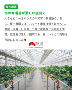 ここ盛岡でいちごを栽培している桜木農園では、スマート農業技術を取り入れ、